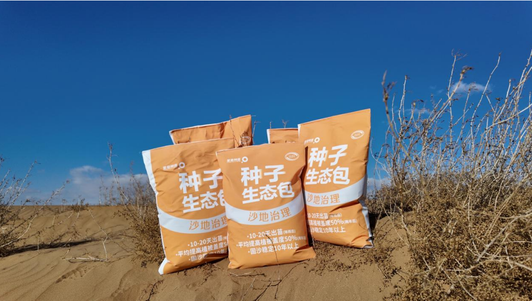 應(yīng)用沙地治理種子生態(tài)包,相比單一植物修復(fù),植被蓋度提升約20%、豐富度提升30%以上。