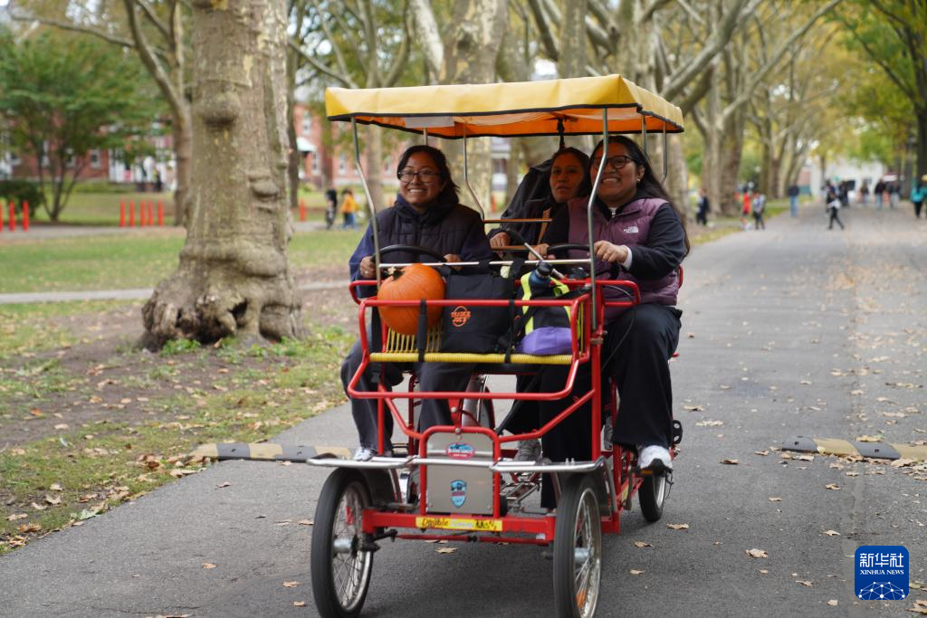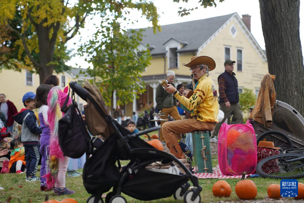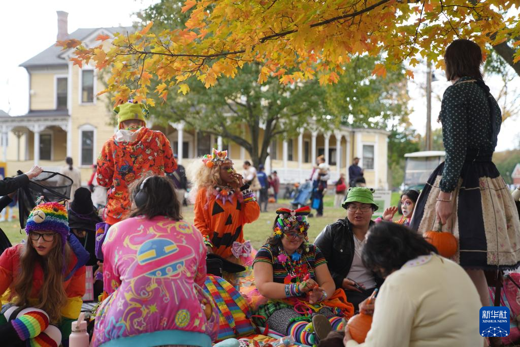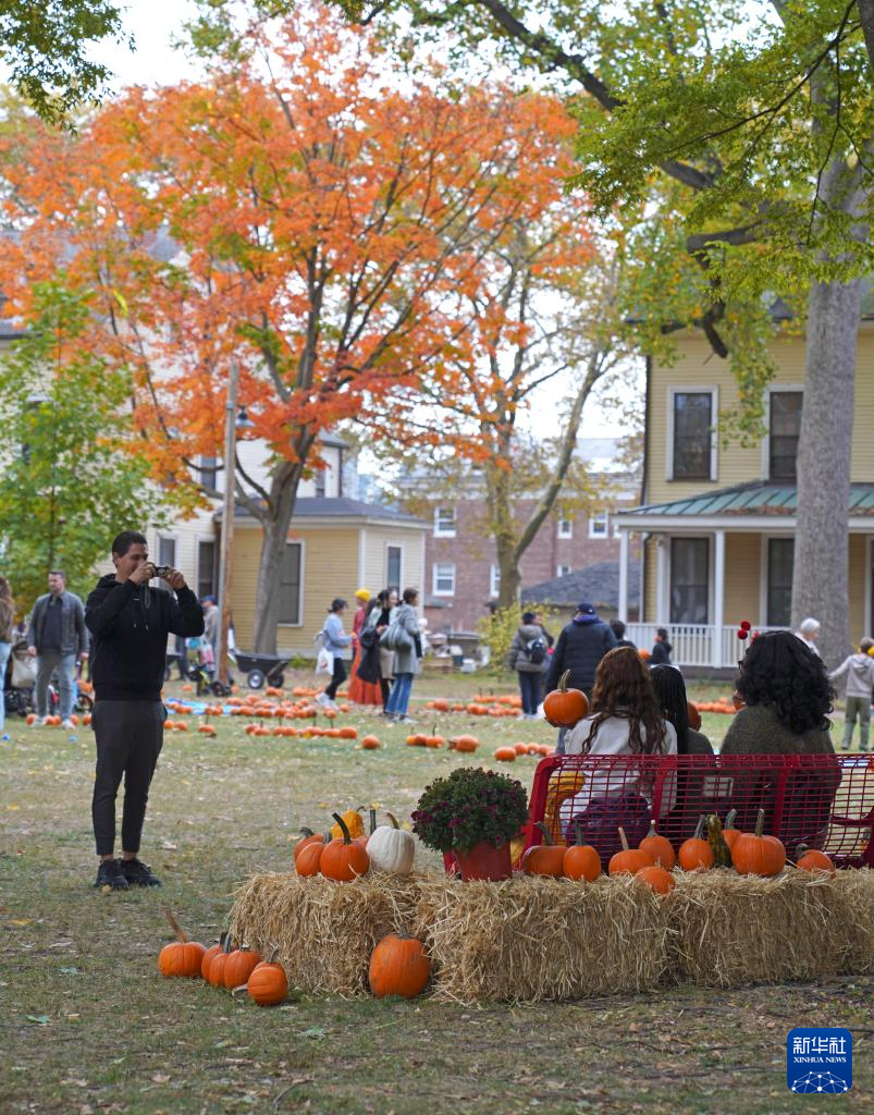 10月25日,人們在美國紐約總督島參加秋日節(jié)活動。