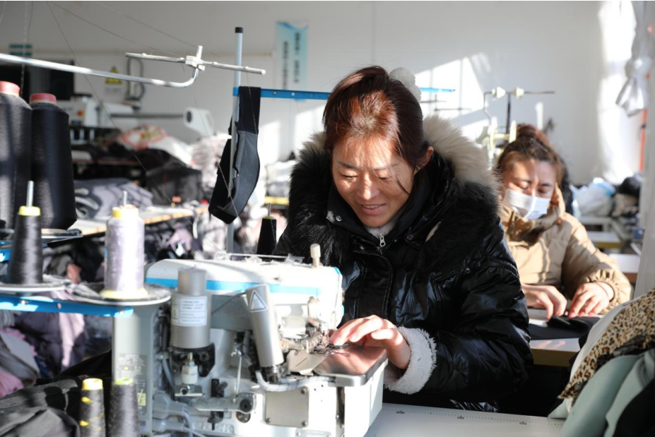 車間里,縫紉機的“噠噠”聲此起彼伏,工人們正埋頭縫制棉褲??朴仪捌燔娝囘_服裝加工有限公司負責人黃巖介紹說:“這些年靠好棉花、好羽絨樹立口碑,打開了銷路,還通過‘機器進村、手工進家’的模式帶動婦女和殘障群體在家門口就業(yè)?!?/p>