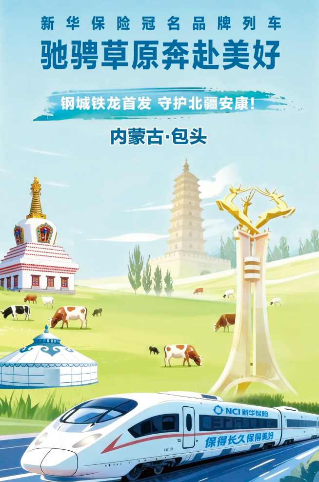 “鋼城”鐵龍首發(fā) 守護(hù)北疆安康|新華保險(xiǎn)冠名品牌列車馳騁草原奔赴美好!